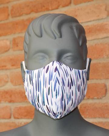 MASCARILLA ANATOMICA SUBLIMADA ANTIFLUIDO TRIPLE CAPA ELASTICO OREJA.  Tela: deportiva antifluido.  Composición: 100% poliéster.  Peso: 134 gr/m2 cada capa.  Tres capas: 402 gr/m2.  Descripción:  Mascarilla en tela deportiva antifluido triple capa para protección de nariz y boca.  Corte anatómico. Dos elásticos para sujetar en cabeza.  Lavadas:  50.