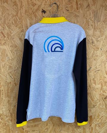 Camiseta polo hombre/unisex con cuello, picos y botones nacarados. Manga larga. Pique polialgodon 50%-50%, tejido normal o nido de abeja. Cuello y puños tono a tono. Calidad premium.