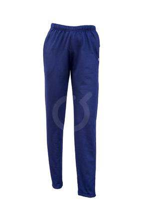 Pantalon calentador. 2 bolsillos laterales. 1 bolsillo trasero con cierre. Cintura con elastico y cordon de ajuste. Rodillas reforzadas hasta la talla 10. Azul. Fleece perchado.