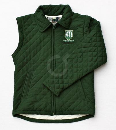 Chaleco abierto. Bolsillos con cierre. Sello blanco. Cintura marcada. Verde. Polar.